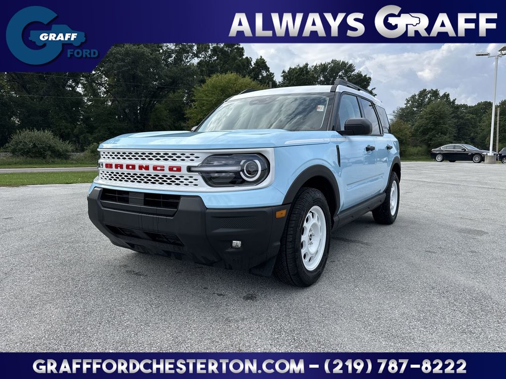 Comments: 2025 Ford Bronco Sport Heritage Robins Egg Blue4WD 8-Speed Automatic 1.5L EcoBoost4-Wheel Disc Brakes, 6 Speakers, ABS brakes, Air Conditioning, AM/FM radio: SiriusXM, Auto High-beam Headlights, Automatic temperature control, Brake assist, Convenience Package, Delay-off headlights, Dual front impact airbags, Dual front side impact airbags, Electronic Stability Control, Emergency communication system: SYNC 4 911 Assist, Four wheel independent suspension, Front anti-roll bar, Front Driver/Passenger Seat Back Map Pockets, Fully automatic headlights, Heated 8-Way Power Driver's Seat, Heated door mirrors, Illuminated entry, Knee airbag, LED Fog Lamps, Low tire pressure warning, Occupant sensing airbag, Overhead airbag, Power steering, Power windows, Premium Wrapped Steering Wheel, Rear anti-roll bar, Rear Parking Sensors, Rear seat center armrest, Rear window defroster, Rear window wiper, Remote keyless entry, Speed control, Speed-Sensitive Wipers, Steering wheel mounted audio controls, SYNC 4 w/Enhanced Voice Recognition, Telescoping steering wheel, Tilt steering wheel, Traction control, Universal Garage Door Opener (UGDO), Variably intermittent wipers, Wheels: 17 Oxford White-Painted Aluminum.25/30 City/Highway MPG