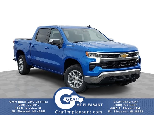 Comments: Here at Graff of Mt. Pleasant, we pride ourselves on providing the best service possible and leaving our customers with a smile. Whether the vehicles are on the lot or still in transit, feel free to call us or stop in to the dealership and we will be happy to answer any questions you may have. We have a wide variety of GM vehicles available. Check out our inventory and contact us to bring home your perfect vehicle today! There's a level of quality and refinement in this Chevrolet Silverado 1500 LT that you won't find in your average vehicle. This 4WD-equipped vehicle handles any condition on- or off-road with the sure footedness of a mountain goat. With unequaled traction and stability, you'll drive with confidence in any weather with this Riptide Blue Metallic 2026 4WD Chevrolet Silverado 1500 LT. You can finally stop searching... You've found the one you've been looking for. The Chevrolet Silverado 1500 LT will provide you with everything you have always wanted in a car -- Quality, Reliability, and Character.