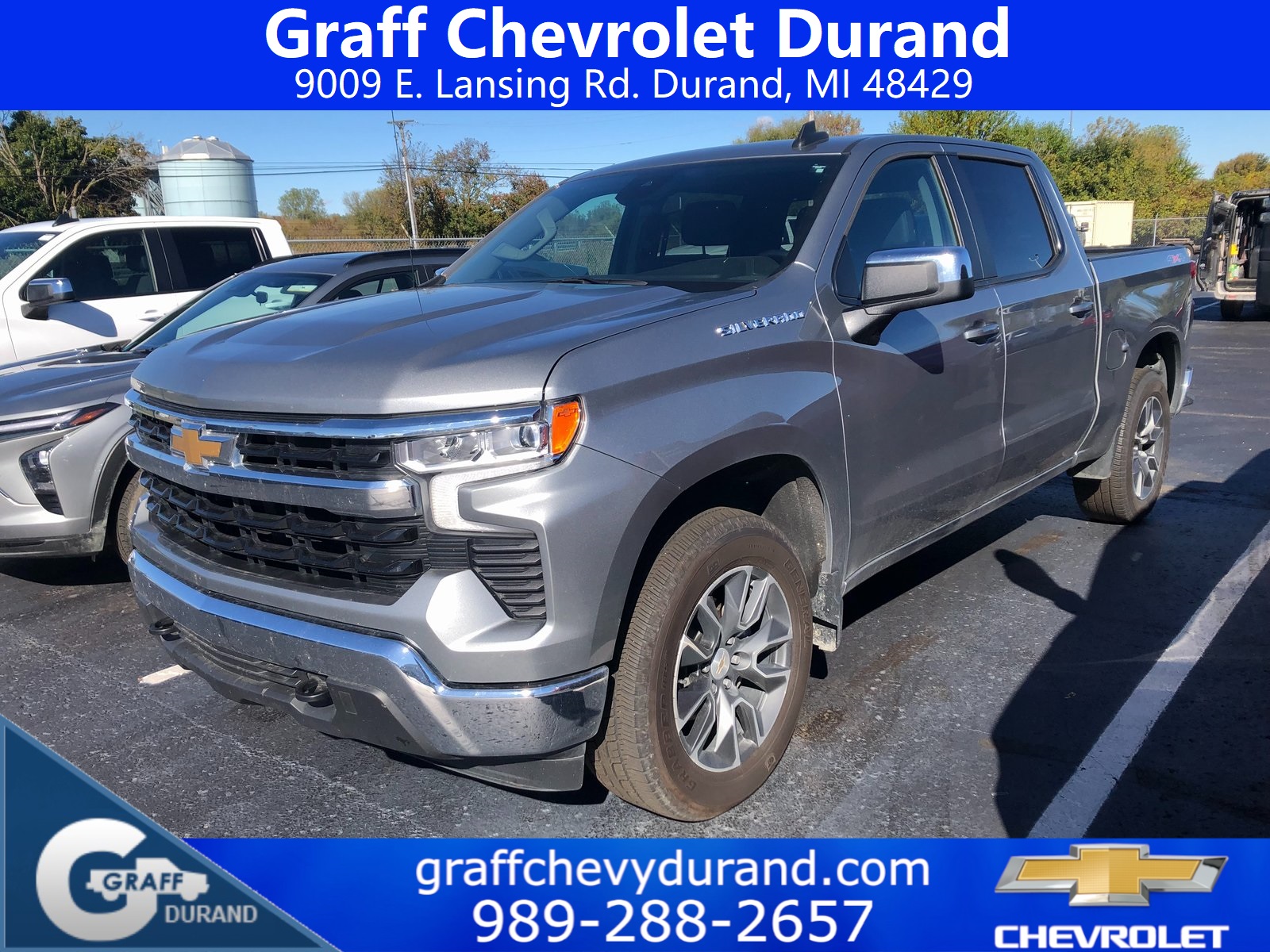 Comments: 2024 Chevrolet Silverado 1500 LT 2.7L I4 Turbocharged DOHC 16V LEV3-SULEV30 310hp 8-Speed Automatic Sterling Gray MetallicVehicle features include: 1 Owner, 8-Speed Automatic, 4WD, Black Cloth, 10-Way Power Driver Seat w/Lumbar, 12.3 Multicolor Reconfigurable Digital Display, 120-Volt Bed Mounted Power Outlet, 120-Volt Interior Power Outlet, All-Star Edition, Auto-Locking Rear Differential, Bluetooth® For Phone, Chevrolet Connected Access Capable, Chrome Mirror Caps, Color-Keyed Carpeting Floor Covering, Convenience Package, Deep-Tinted Glass, Dual Rear USB Ports (Charge Only), Dual-Zone Automatic Climate Control, Electrical Steering Column Lock, Electronic Cruise Control, Front Frame-Mounted Black Recovery Hooks, HD Rear Vision Camera, Heated Driver & Front Outboard Passenger Seats, Heated Steering Wheel, High Capacity Suspension Package, Hitch Guidance, Keyless Open & Start, LED Cargo Area Lighting, OnStar & Chevrolet Connected Services Capable, Power Front Windows w/Driver Express Up/Down, Power Front Windows w/Passenger Express Down, Power Rear Windows w/Express Down, Preferred Equipment Group 2FL, Rear 60/40 Folding Bench Seat (Folds Up), SiriusXM w/360L, Standard Suspension Package, Steering Wheel Audio Controls, Trailering Package, Wi-Fi Hot Spot Capable, Wrapped Steering Wheel.Recent Arrival!At Graff Chevrolet in Durand, we want to revolutionize the car buying experience by making it fun. After all, getting behind the wheel of a new car should be exciting!