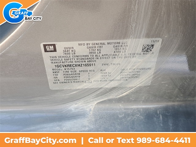 All pre-owned vehicle sales include 2 free oil changes and tire rotations. Any vehicles showing in our inventory are on our lot, not at another store miles away. We believe in transparent pricing and we do not charge dealer fees or add any additional surprise fees to our prices.Call Graff today at 989-684-4411 to confirm availability! Note: Internet prices are not compatible with other offers unless specified by dealer.Priced below KBB Fair Purchase Price!EcoTec3 5.3L V84WD 6-Speed Automatic Electronic with Overdrive6-Speed Automatic Electronic with Overdrive, 4WD, Black Cloth.Awards: * 2017 KBB.com 10 Most Awarded Brands