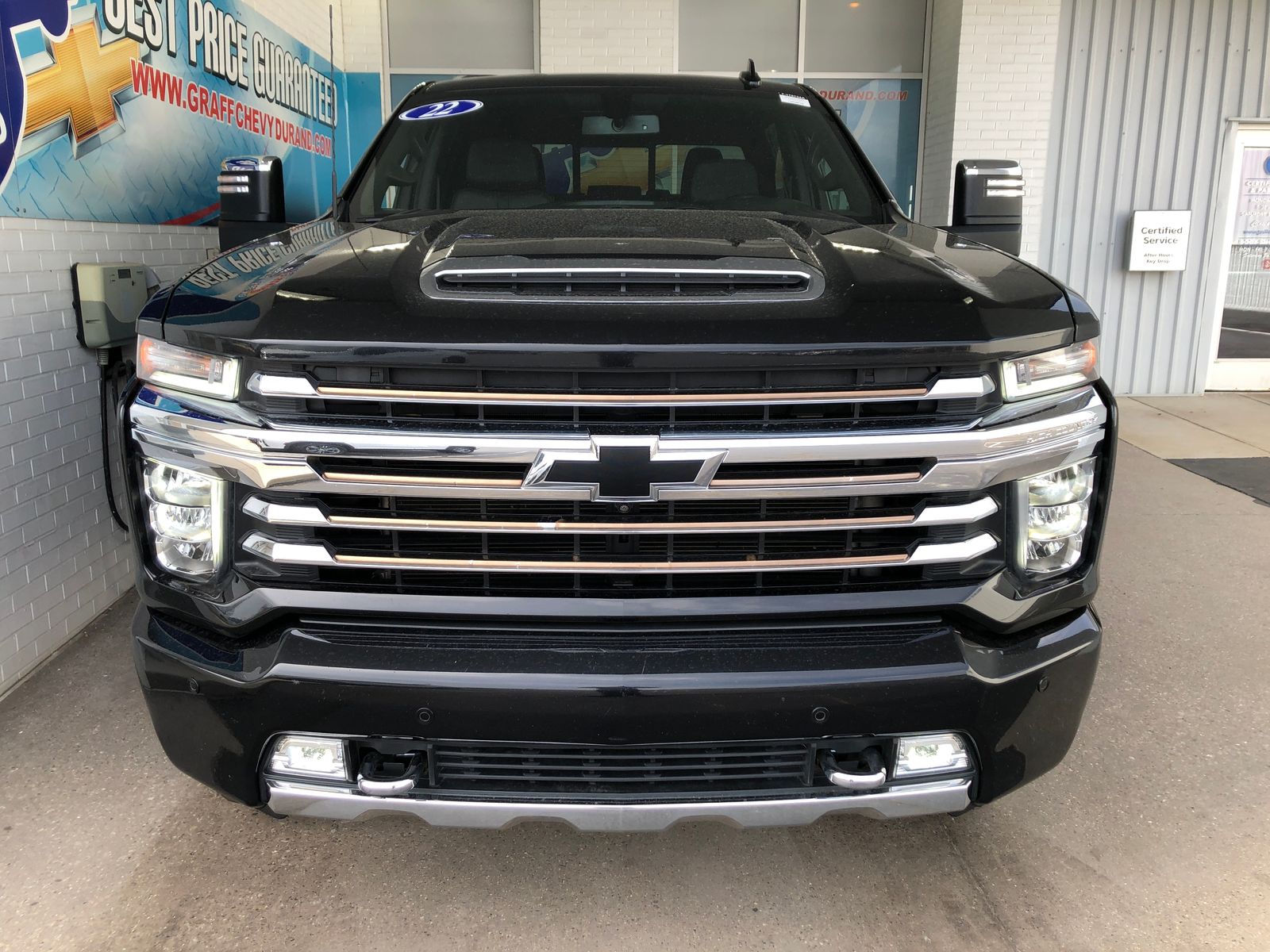 2022 Chevrolet Silverado 2500HD High Country 6.6L V8 6-Speed Automatic Mosaic Black MetallicVehicle features include: 1 Owner, 6-Speed Automatic, 4WD, Jet Black Leather, 12-Volt Rear Auxiliary Power Outlet, 120-Volt Bed Mounted Power Outlet, 120-Volt Instrument Panel Power Outlet, 170 Amp Alternator, 6 Rectangular Chromed Tubular Assist Steps, 8 Driver Information Center, Advanced Trailering System, Auto-Dimming Inside Rear-View Mirror, Bed View Camera w/2 Trailer Camera Provisions, Black Chevytec Spray-On Bedliner w/Chevrolet Logo, Black Name Plates (LPO), Black Tailgate CHEVROLET Lettering (LPO), Bluetooth® For Phone, Chevrolet Connected Access Capable, Chrome Front Grille, Chrome Mirror Caps, Color-Keyed Carpeting Floor Covering, Compass, Dark Essentials Package (LPO), Deep-Tinted Glass, Dual Charge-Only USB Ports (2nd Row), Electric Rear-Window Defogger, Electrical Lock Control Steering Column, Electronic Cruise Control w/Set & Resume Speed, Front Black Bowtie Emblem (LPO), Front Carpeted Floor Mats, Front Chrome Recovery Hooks, Front LED Fog Lamps, Gooseneck/5th Wheel Prep Package, HD Surround Vision w/2 Trailer View Camera Provisions, Heated & Auto-Dim Pwr Vertical Trailering Mirrors, Heated Steering Wheel, Hitch Guidance w/Hitch View, Integrated Trailer Brake Controller, Keyless Open & Start, Lane Change Alert w/Side Blind Zone Alert, Leather-Wrapped Steering Wheel, LED Cargo Area Lighting, Manual Tilt & Telescoping Steering Column, OnStar & Chevrolet Connected Services Capable, Polished Exhaust Tip, Power Door Locks, Power Front Windows w/Driver Express Up/Down, Power Front Windows w/Passenger Express Up/Down, Power Rear Windows w/Express Down, Power Sliding Rear Window w/Defogger, Preferred Equipment Group 3LZ, Rear Carpeted Floor Mats, Rear Cross Traffic Alert, Rear Wheelhouse Liners, Remote Vehicle Starter System, SiriusXM w/360L, Standard Tailgate, Steering Wheel Audio Controls, Suspension Package, Ultrasonic Front & Rear Park Assist, Unauthorized Entry Theft-Deterrent System, Universal Home Remote, Up-Level Rear Seat w/Storage Package, Wi-Fi Hotspot Capable, Wireless Charging, Wireless Phone Projection.Recent Arrival!At Graff Chevrolet in Durand, we want to revolutionize the car buying experience by making it fun. After all, getting behind the wheel of a new car should be exciting!