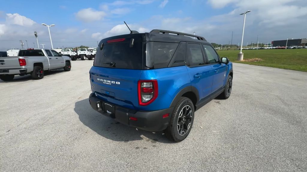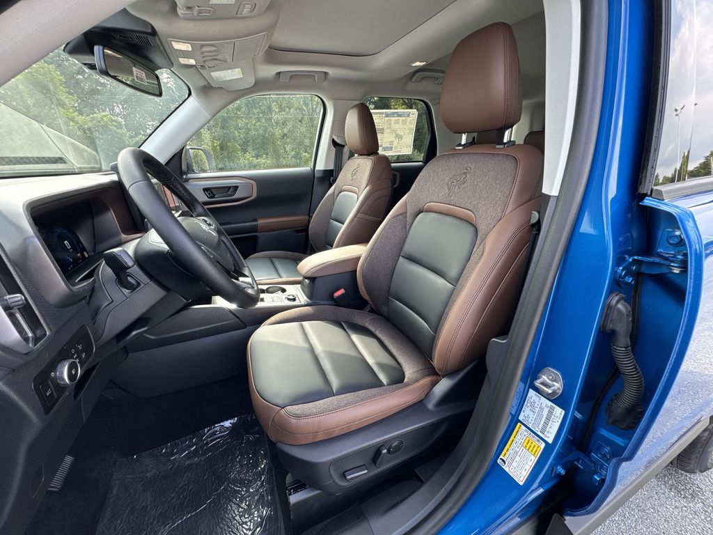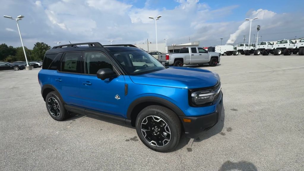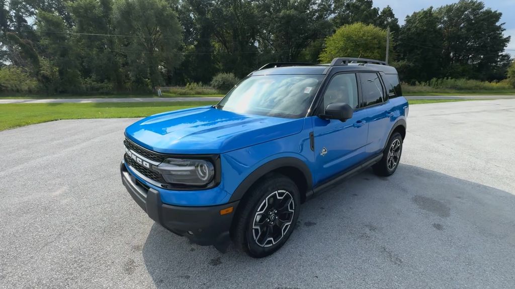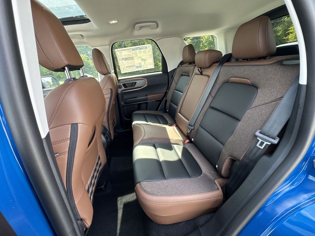 2025 Ford Bronco Sport Outer Banks Velocity Blue Metallic4WD 8-Speed Automatic 1.5L EcoBoost360-Degree Camera w/Trail & Split View, 4-Wheel Disc Brakes, 6 Speakers, ABS brakes, Air Conditioning, Auto High-beam Headlights, Auto-dimming Rear-View mirror, Automatic temperature control, B&O Sound System by Bang & Olufsen, Brake assist, Connected Navigation, Delay-off headlights, Dual front impact airbags, Dual front side impact airbags, Electronic Stability Control, Emergency communication system: SYNC 4 911 Assist, Four wheel independent suspension, Front anti-roll bar, Front Bucket Seats, Front Driver/Passenger Seat Back Map Pockets, Front dual zone A/C, Front fog lights, Front Parking Sensors, Fully automatic headlights, HD Radio, Heated door mirrors, Heated front seats, Heated steering wheel, Illuminated entry, Knee airbag, Low tire pressure warning, Memory seat, Occupant sensing airbag, Outer Banks Tech Package+, Overhead airbag, Power driver seat, Power Moonroof, Power steering, Power windows, Premium Trimmed Front Bucket Seats w/Ebony/Roast, Rain sensing wipers, Rear anti-roll bar, Rear Parking Sensors, Rear window defroster, Rear window wiper, Remote keyless entry, Speed control, Speed-sensing steering, Steering wheel mounted audio controls, SYNC 4 w/Enhanced Voice Recognition, Telescoping steering wheel, Tilt steering wheel, Traction control, Variably intermittent wipers, Wheels: 18 Ebony Black-Painted Aluminum.25/30 City/Highway MPG