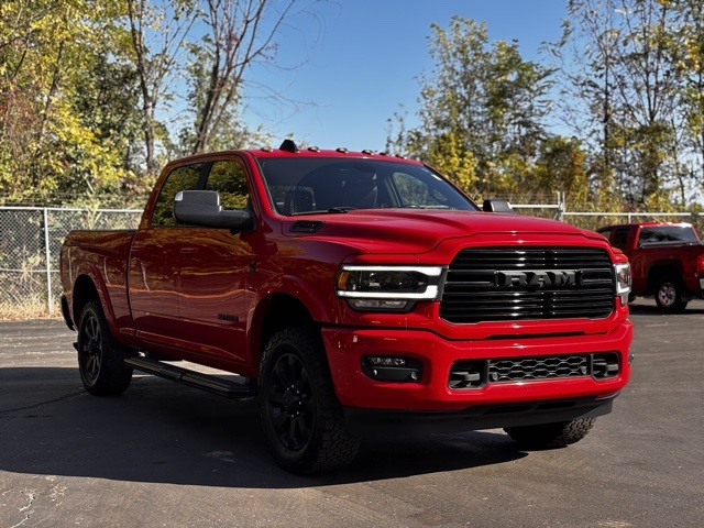 backup camera, bluetooth, BIG BOY TRUCK, 2500 Laramie, 4D Crew Cab, Cummins 6.7L I6 Turbodiesel, 6-Speed Automatic, 4WD, Flame Red Clearcoat, Black Leather, 2nd Row In Floor Storage Bins, 4 Adjustable Cargo Tie-Down Hooks, Air Suspension Decal, Auto High Beam Headlamp Control, Auto Level Rear Air Suspension, Black Exterior Mirrors, Black Exterior Truck Badging, Black Headlamp Bezels, Black Interior Accents, Black Ram Head Tailgate Badge, Black Tail Lamp Bezels, Black Wheel Center Hub, Body Color Door Handles, Body Color Grille Surround, Chrome Exterior Mirrors, CTR Stop Lamp w/Cargo View Camera, Exterior Mirrors Courtesy Lamps, Exterior Mirrors w/Heating Element, Exterior Mirrors w/Memory, Exterior Mirrors w/Supplemental Signals, Foam Bottle Insert (Door Trim Panel), Gloss Black Grille Billets/Accents, GPS Navigation, Laramie Level A Equipment Group, Mirror Running Lights, Mirror-Mounted Aux Reverse Lamps, Night Edition, Painted Front Bumper, Painted Rear Bumper, ParkView Rear Back-Up Camera, Power Adjustable Convex Aux Mirrors, Power Adjustable Pedals w/Memory, Power Black Tow Mirrors w/Convex Spotter & Memory, Power Chrome Tow Mirrors w/Convex Spotter & Memory, Power Folding Mirrors, Quick Order Package 2HH Laramie, Radio/Driver Seat/Mirrors/Pedals Memory, Rain Sensitive Windshield Wipers, RamBox Utility Group (DISC), Remote Tailgate Release, Surround View Camera System, Towing Technology Group B, Trailer Reverse Guidance, Trailer Tow Mirrors, Truck Bed Cargo Divider, Wheels: 20 x 8.0 Black Painted Aluminum.4WD 6-Speed Automatic Cummins 6.7L I6 Turbodiesel
